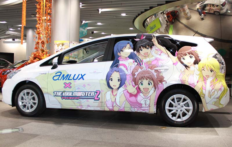 いたるところにアイマスのポスターが貼ってある一番目立つところに公式デコレーションを施したプリウスαが鎮座。