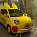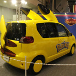 アルファードの隣にはトヨタ・ポルテベースのピカチュウカー。顔が完全にピカチュウになっています。しかもちゃんとミミまでついていますね。