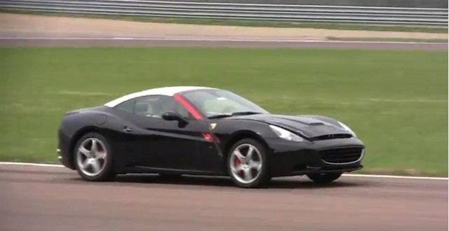 F12のテストに混じって走行していた黒いクルマの正体はフェラーリ・カルフォルニアでした。しかし、この映像を見るとわかるのですが