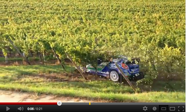 WRC2012のラリー・ド・フランスでの出来事。 フォード・フィエスタRSに乗るペター・ソルベルグがコースアウトした先は、まさにフランスらしいぶどう畑。