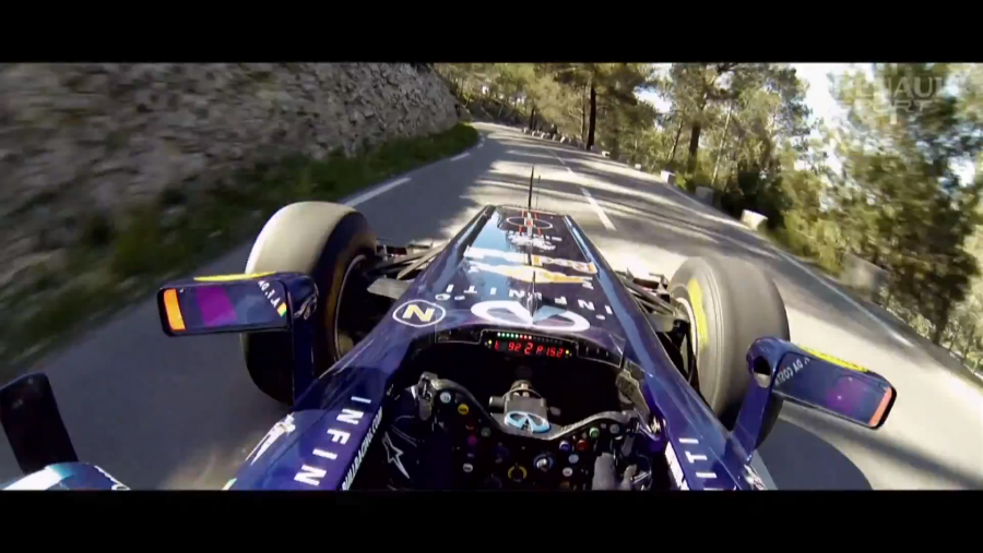 というシーンで、実際にレッドブルF1が一般道の峠道(チュリニ峠かな?)を走行するシーンが登場するわけです。とうぜん公道を封鎖して撮影しているのでしょうが、峠道でF1が走るシーンは私もあまり見たことがありません。最後の字幕を見ると、RB7と書いてあるので、2011年度のマシンのようですね。そして、F1走行シーンの撮影のためのドライバーは近々F1へのステップアップが予想されているアントニオ・フェリックス・ダ・コスタのようです。