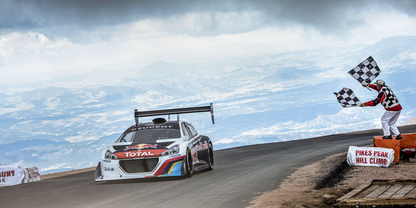 9度のWRCチャンピオンに輝いた、まさに現在進行形のレジェンドといえるセバスチャン・ローブ選手が、プジョー208 T16 パイクスピークで挑んだパイクスピーク。全長約20kmのヒルクライムを平均速度145km/hで走り切ったのです。
