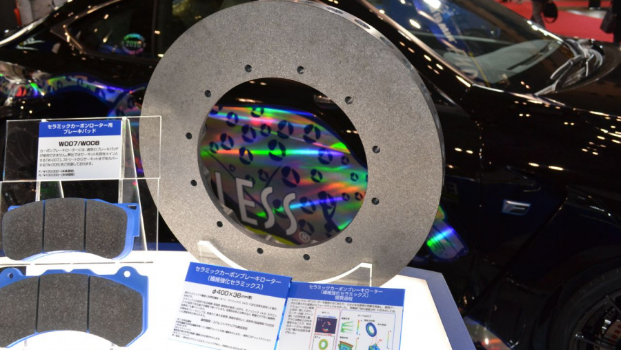 これは、そのデメリットを解消するために、単なるカーボンだけのコンポジットによるブレーキローターではなく、強化セラミックス繊維に炭素短繊維、マトリックスに炭化ケイ素を使ったセラミックカーボンという複合材料だそうです。これを使うことで、低温域から制動力を発揮してくれるし、パッドも一般のローター用と兼用できる摩擦材を使ったものが組み合わせられるとか。そして鋳鉄製のローターよりはずっと軽いものができるわけです。まぁ、まだ実用化には遠いそうですが、コストをかければこんなものも作れるんですね。