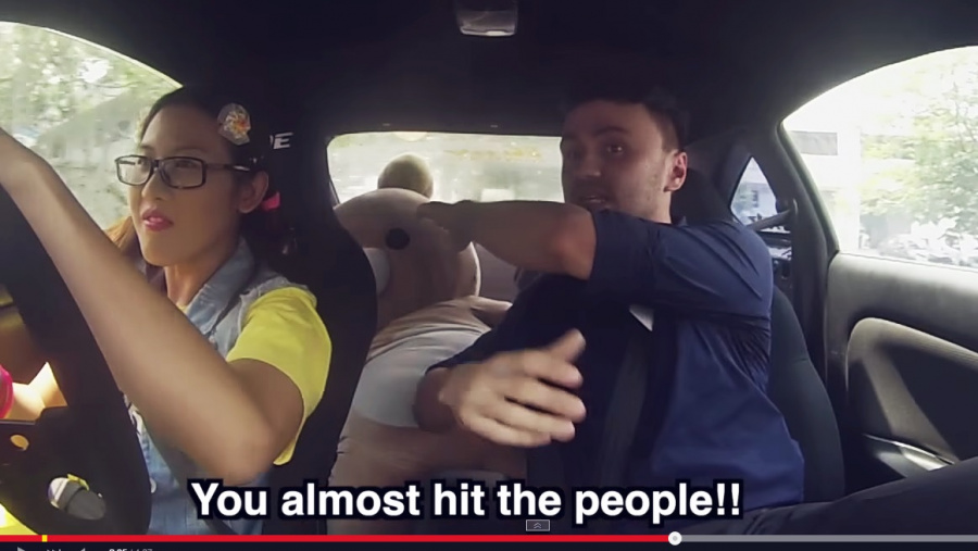 何と、この女性、まともに走れないにも拘わらず、街中から広場に出るや、いきなりアクセル全開でドリフトをキメながら激しく旋回し始めるではありませんか!