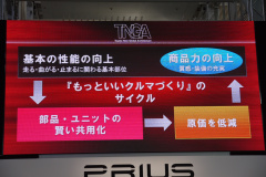 新型プリウス発表会には、豊田社長は来場していませんでしたが、加藤光久副社長によると、「クルマつくりの構造改革」と語っています。