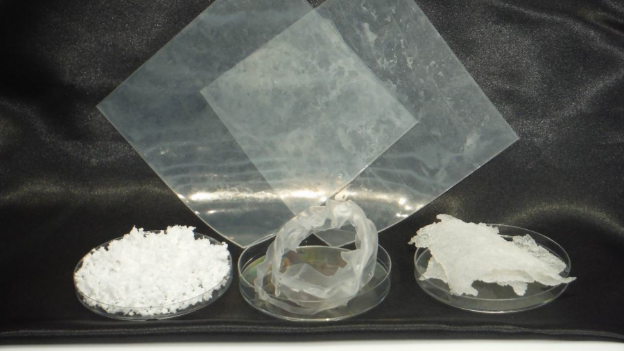 発表会の場では加硫していない生ゴムとHSRを輪ゴム状にして引っ張ってみるといったデモンストレーションもありましたが、生ゴムがパチンと切れてしまうのに対してHSRは加硫による弾性があるかのように伸びて切れることはありませんでした(もちろん、加硫していないので伸びっぱなしになってしまいますが)。
