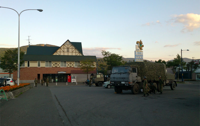 道の駅が休憩地点になっているようで、続々と自衛隊が集結。また隣接のコンビニも開店したため多くの人が来店し、おにぎりやお弁当、パンなどは早々に無くなっていました。