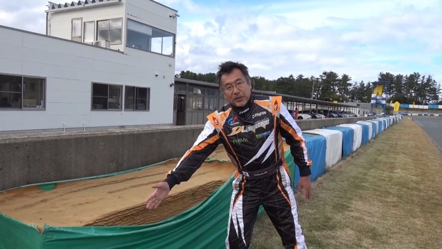 また、コースアウトしてスポンジバリア(クラッシュパッド)のお世話になった場合も同様。あのスポンジは乾燥しているとけっこう簡単に火がつくのだそう。大井さんのライター着火実験では燃えませんでしたけど(※実験だからといって、スポンジ千切っちゃいけません!)、動かせるものならスポンジバリアをクルマから引き離すのがベストだそうです。もちろん、安全確認をしたうえで。