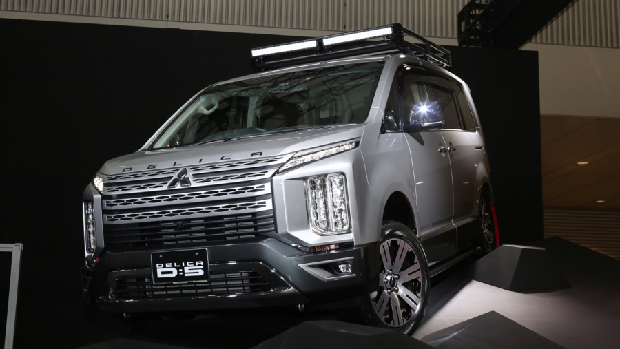 三菱ブースの主役は、まもなく販売が予定されている新型デリカD:5。