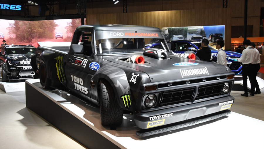 このF150に搭載されたエンジンはル・マン24時間レースでクラス優勝したフォード「GT LM GTE」用をベースとする3.5リッター「エコブースト」V型6気筒ツインターボエンジン。タイヤはプロクセスST3(日本未発売)がチョイスされました。こんなバケモノのようなマシンの製作者は、世界中に多くのファンを持つハイテクニックドライバー、ケン・ブロックです。