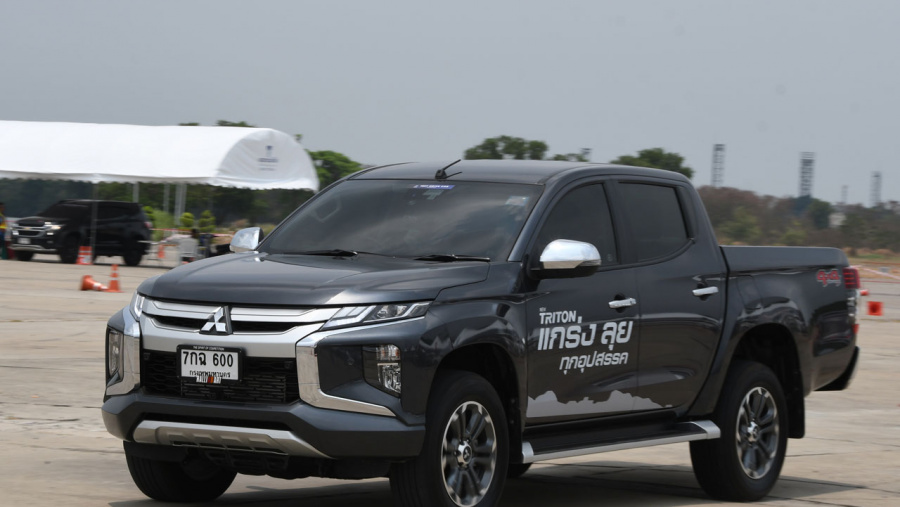 3月下旬、タイ王国バンコク近郊で開催されたバンコクモーターショーの会場で、三菱自動車の主力1トンピックアップトラック「トライトン」に試乗しました。試乗コースは舗装された広場の特設コースです。