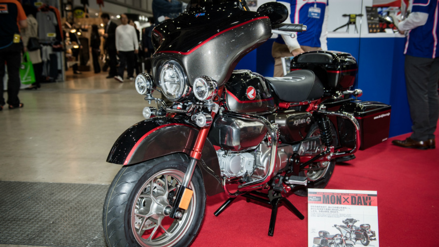 そう、かつてモンキー(50cc)をベースにしたキジマの本気半分・ギャグ半分みたいな伝説のカスタムマシンが、なんとモンキー125をベースに復活! もともと大きなモンキー125がフロントカウルやトップボックスを装着することで、クラスを超えた悠々としたクルーザーに変身していました!