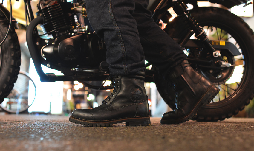 重いものを持ってる時も踏ん張れるし、万が一足の上に落としてもこれなら大丈夫だろう、と思うくらい安心感があります。そこまでゴツイブーツではないのでバイクだけじゃなく街履きとしても使ってます。
