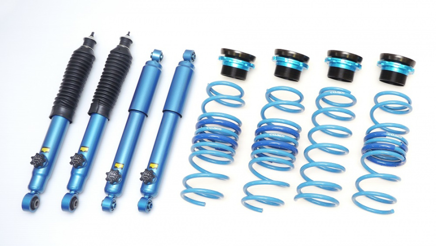 デビュー以来、熱狂的ともいえる支持を集めている新型ジムニー(JB23W、JB64W)に向けて開発された車高調整の可能なサスペンションキットで、1インチダウン仕様2インチアップ仕様が用意されているのがポイント。