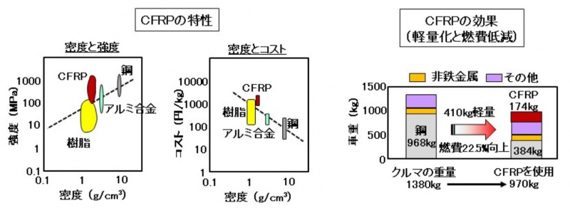 CFRPは、航空機やレーシングカーへの採用から、いよいよ一般量産車への適用が加速しています。その背景には、電動化や安全技術の装備などによるクルマ全体の重量増加と、厳しさを増す燃費規制があります。