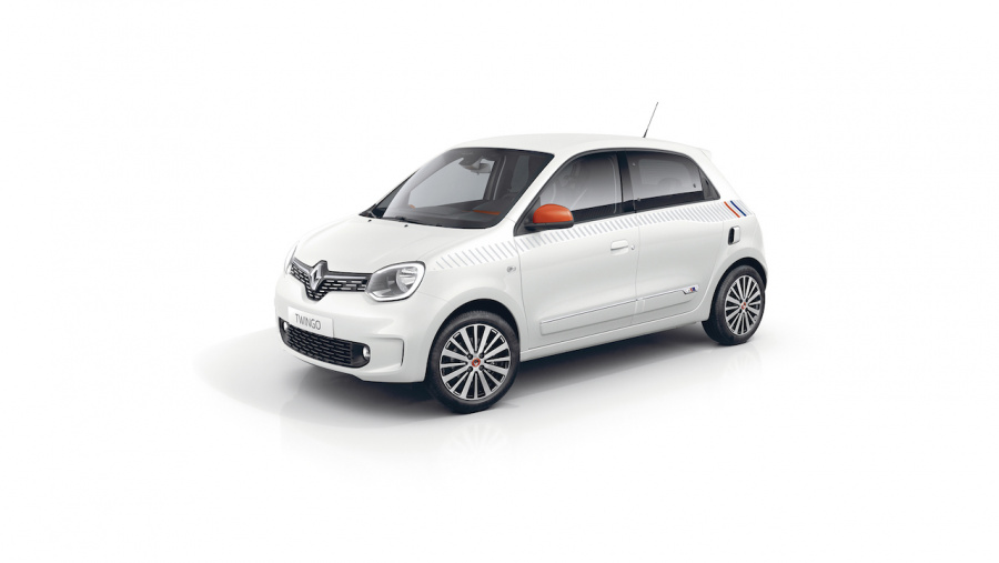 新型「ルノー トゥインゴ ルコックスポルティフ」は、専用の「ブラン クオーツ メタリック」のボディカラーに、フランスの象徴であるトリコロールが配されたスポーティかつエレガントなフレンチスタイルのデザインが最大の魅力です。