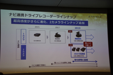 また、別売りの前後2カメラドライブレコーダー(CA-DR03TD/別売)との連携も実現しています。カーナビ画面で後方の映像を確認できるなど、あおり運転の不安にも対応しています。