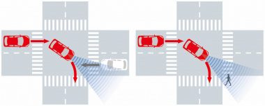 デンソー製のカメラ・ソナーというハード面は変わらないものの、ソフト面(アルゴリズム)の進化により「Toyota Safety Sense」のプリクラッシュセーフティは、昼夜対応の歩行者検知機能、昼間の自転車検知(横断時、追走時)に加えて、右折時の対向直進車や右左折後の横断歩行者も検知(トヨタ初)。