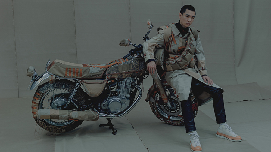 今回の企画はヤマハとファッションデザイナー志鎌英明さんのコラボにより生まれたもの。ヤマハの開発思想でもある「人機官能」にインスパイアを受け、この作品を作り上げました。