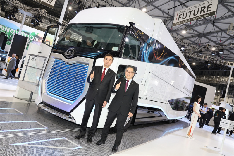 UDトラックスは東京モーターショー2019でレベル4自動運転のコンセプトトラックと場内EV走行が可能なハイブリッドトラックの実験車両を公開しました。