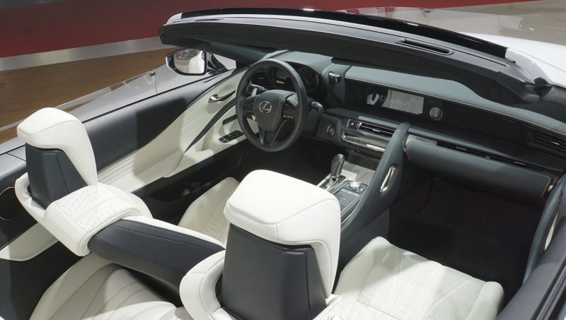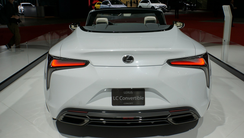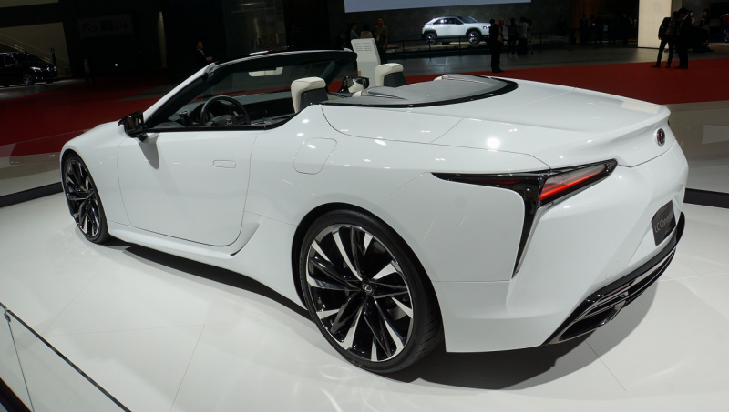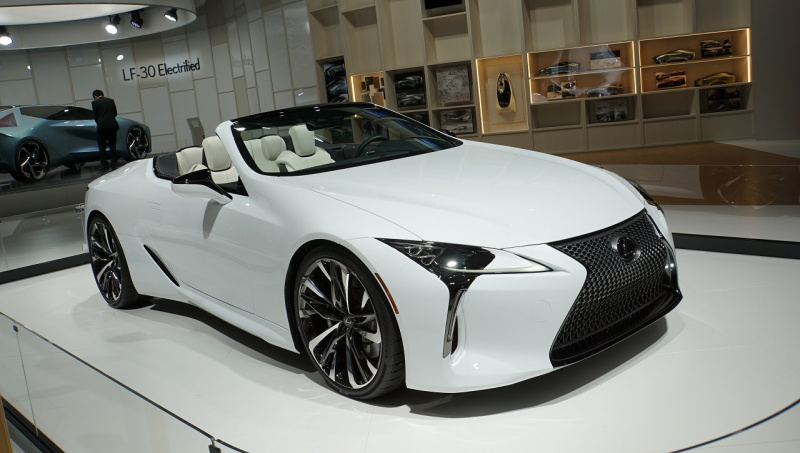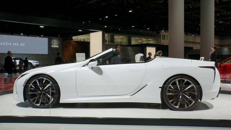 つい昨日、ブランド初のEVコンセプト「LF-30 Electrified」を公開したばかりのレクサス。翌24日のブースには、気品を感じさせる純白のオープン「LCコンバーチブル・コンセプト」が展示されていました。