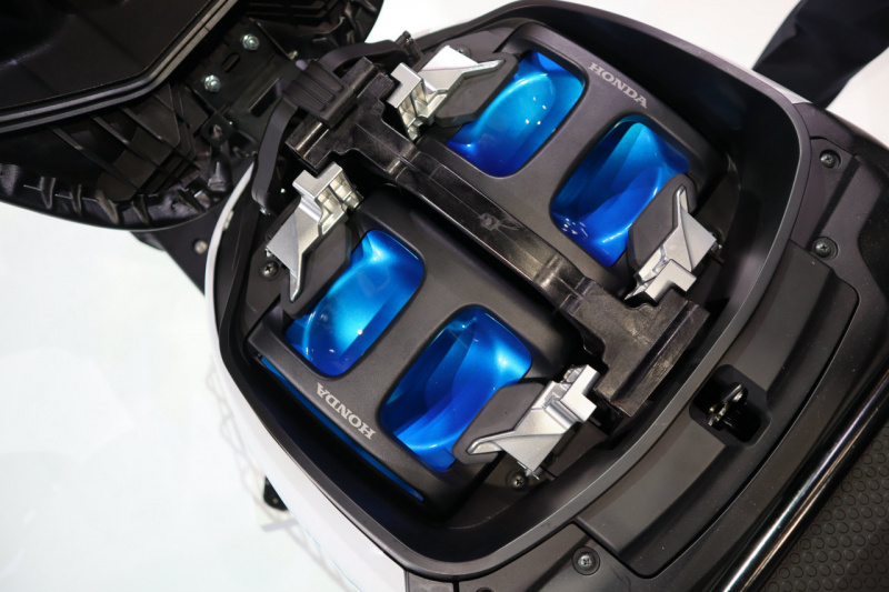バッテリーの容量は1つ1Kwで、充電は専用の充電器で行い、満充電にかかる時間は約4時間。航続距離はPCXエレクトリックとほぼ同等の41km(60km/h定地走行テスト値・1名乗車時)で、走りもベースとなったエンジン車両と同等を実現しています。また、両モデル共にリバースボタンが装備されているので、バックをすることも可能です。