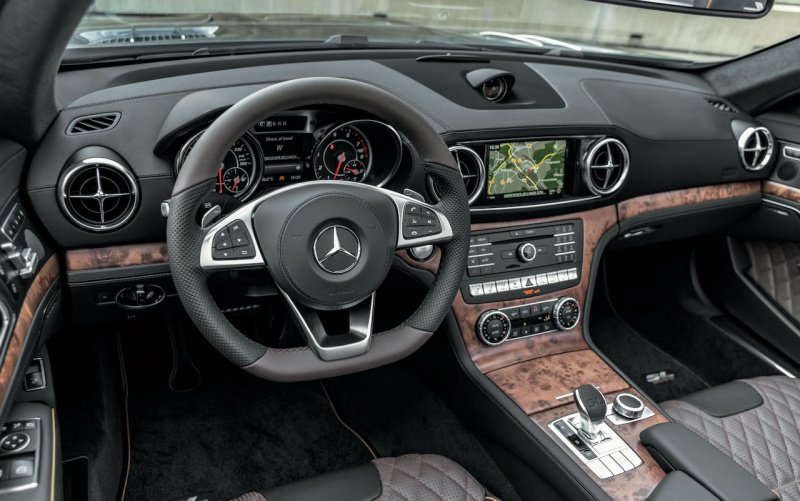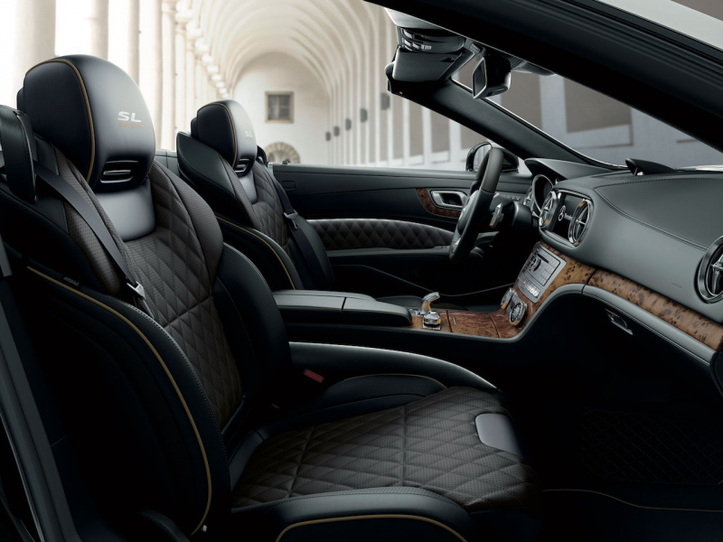 インテリアには、トップパフォーマンスモデル「メルセデス AMG SL 65」に採用されているダイヤモンド ステッチがあしらわれたタンドラブラウンパールとブラックを組み合わせたナッパレザー シート、そしてライトブラウンポプラウッドインテリアトリムが上質でエレガントな空間を演出。