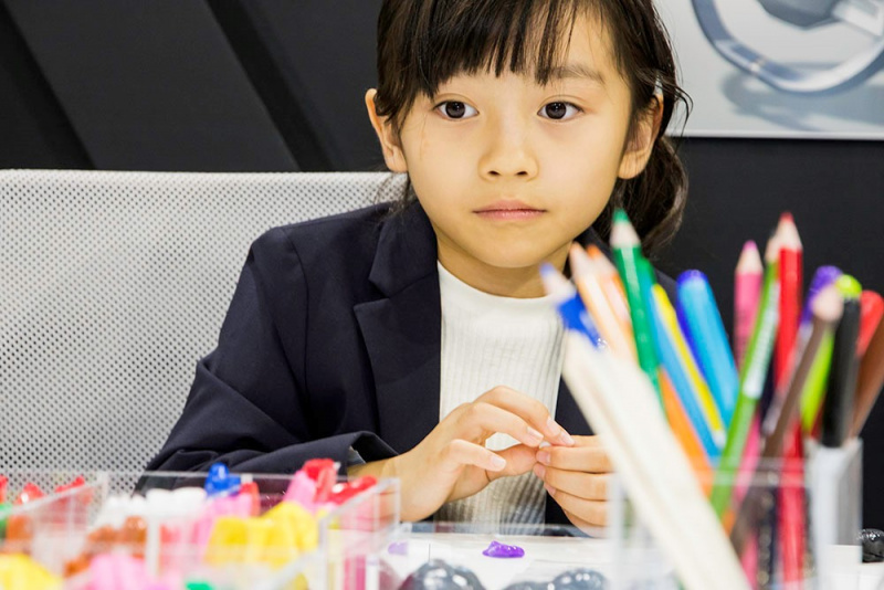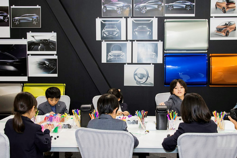 子どもたちは自由に未来のクルマを思い描き、カラフルな粘土を使ってそのデザインを形にしてゆきます。テーブルには粘土を成形するヘラのほかにも、色鉛筆やマーカーなど、いろいろな画材が用意されていました。