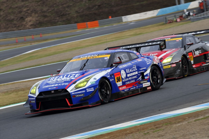 レース後半に15秒という大差をつけるLEON PYRAMID AMGを必死で追いまくるリアライズ 日産自動車大学校 GT-RとGAINER TANAX GT-Rの2台のGT-R。