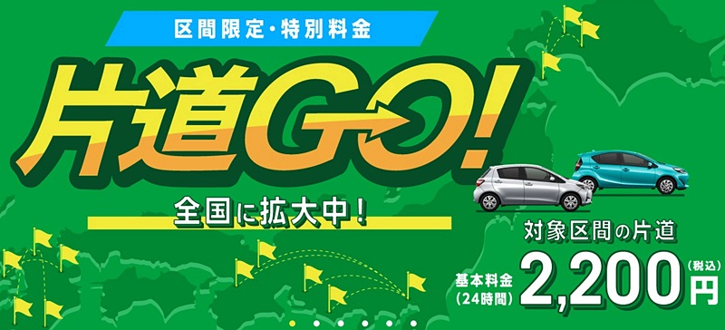 サービス名は「片道GO!」。東京‐大阪間や福岡‐宮崎、札幌‐函館などの定められた区間にある店舗に車両を返却するのが条件。