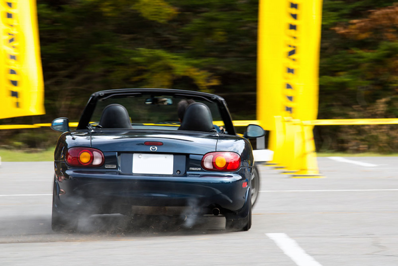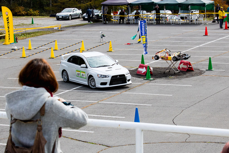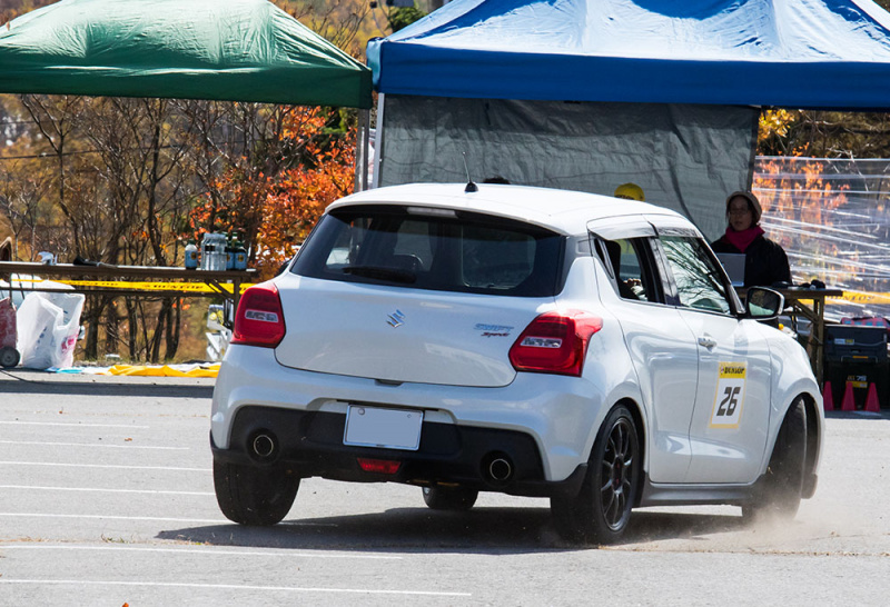 現代の乗用車で最もポピュラーな駆動方式となっているFF(前輪駆動)だけに、大会最多の15台がエントリーする人気クラスとなりました。ステアリングを切った方向に駆動力がかかるFFは、フロントがしっかりインに入る曲がりやすさの反面で、タックインなど独特の挙動が現れる場合も。とりわけコーナーへのアプローチで正確なブレーキング・テクニックが求められる駆動方式です。