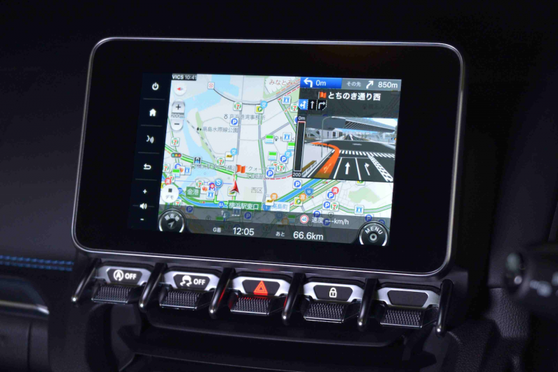 「Alpine mySPIN」が「カーナビタイム」と連携したことにより、「Alpine mySPIN」をインストールしたスマホに「カーナビタイム」をインストールし、アルピーヌ A110 と接続することで、マルチファンクションタッチスクリーンに最適化されたUI(ユーザーインターフェイス)でのルート表示、案内が可能になっています。