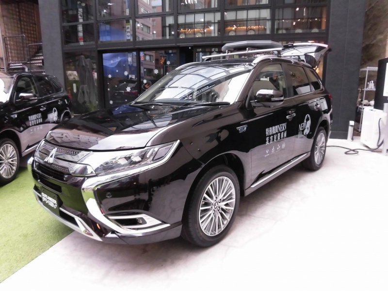 そんな「NERV」が災害時にも安定した情報サービスが継続できるように開発したのが、アウトランダーPHEVを使用した災害対策車両の「特務機関NERV制式 電源供給・衛星通信車両 5LA-GG3W(改)」。