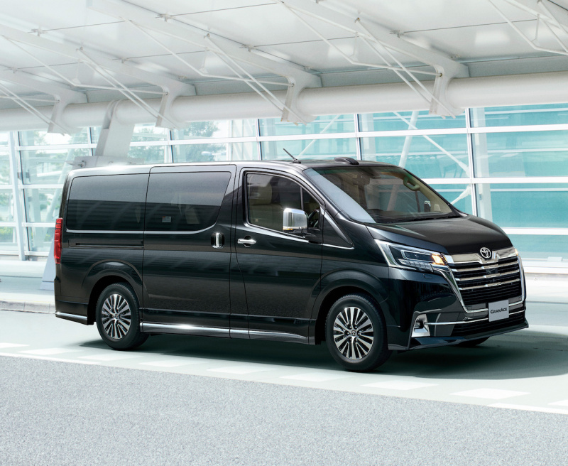 「東京モーターショー2019」でも話題を集めた新型トヨタ・グランエース。FRレイアウト、全長5300×全幅1970×全高1990mmの巨体に3列6人乗り、もしくは4列8人乗りが設定されています。