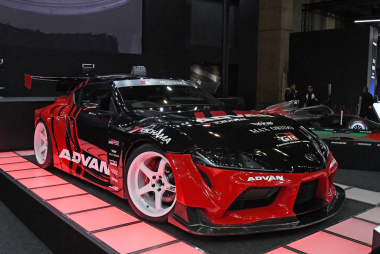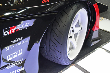 なかでも注目なのが、ブースセンターに展示されたアドバンカラーのスープラです。このスープラはレーシングドライバーの織戸学選手とHKSがモディファイしたモデルで「MAX ORIDO ADVAN Supra tuned by HKS」と名付けられています。装着されているタイヤはアドバン・ネオバ AD08Rの後継とされるコンセプトモデルで、ネオバらしい力強いパターンでデザインされています。