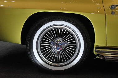 そうしたなかで目立つ存在だったのは、ヒストリックなシボレーコルベットに装着されたホワイトリボンタイヤでした。「Y360」と名付けられたこのタイヤは、近々販売が予定されているモデルで、アメリカンヒストリックカーなどにジャストフィットするデザインとなっています。ホワイトリボンのアクセントはもちろん、バルーンのようなふくよかな膨らみが与えられたサイドウォールなどが、古きよき時代を思い出させるフォルムです。