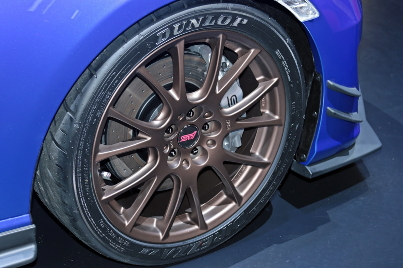 市販のBBS RE-Vをベースに専用色とし、特別塗装色のギャラクティクWRブルーメタリックにもマッチするカラーとなっています。ベースのBRZ STI Sportではタイヤにミシュラン製を採用していますが、BBSホイールにダンロップタイヤを組み合わせるBRZ GT300をオマージュし、タイヤもダンロップ ディレッツァへと変更されています。