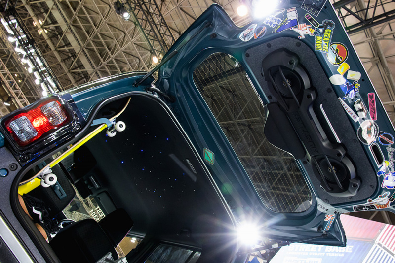 テールゲートに座れば、バックドアに埋め込まれたスピーカーで音楽も楽しめます。天井にはLEDのイルミネーションがきらきら輝いて、まるで本物の星空みたい。晴れた日も雨の日も大好きなクルマの中で星空が見られるなんて、とってもロマンチックですよね!