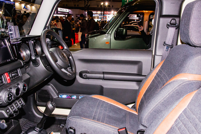 内装のカスタムは控えめですが、シートにデニム生地を使っているのが大きな特色です。肌触りがよく座りごこちのいいシートなので、ロングドライブもリラックスして楽しめそう。こんな素敵なルーフトップテント付きのクルマなら、仲間と出かけるいつものキャンプが一味も二味も違うものになりそうですよね。