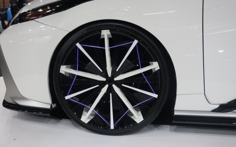 「最近の空力のいいクルマのホイールはこうしてブラックパーツで被っている表現が多いですよね。LEDの光についてはサイドからの視認性を上げることもありますが、こうした見せ方はいままでになかったので、お客様の反応を見たいなと(笑)」
