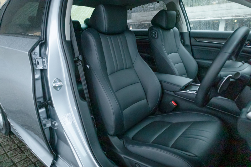 乗員を前後方向、左右(横)方向共に、より中央に座らせるパッケージングも採用されました。また、前席のヒップポイントを25mm下げ、ヒールポイントも15mm低くなっています。代を重ねることに、乗降性などへの配慮から徐々にヒップポイントが高くなってきたそうですが、新型アコードは欧州セダンなどと同じように、低くて安定感のある姿勢でセダンらしい運転姿勢を追求したそうです。