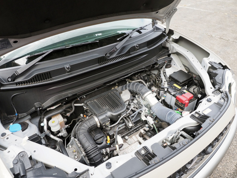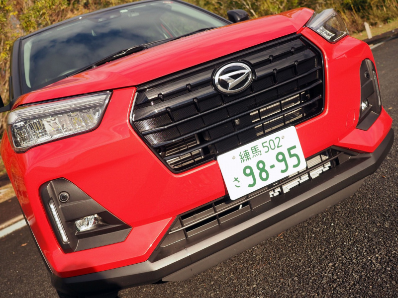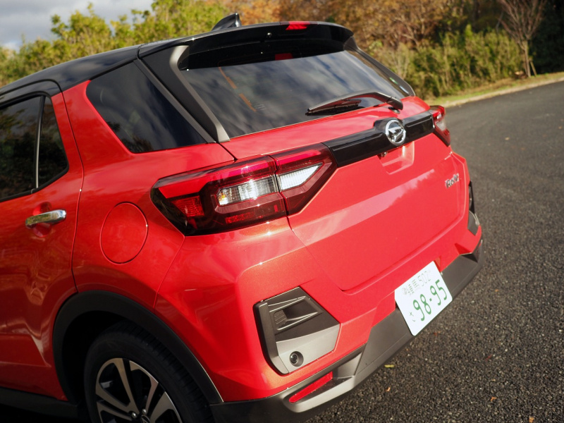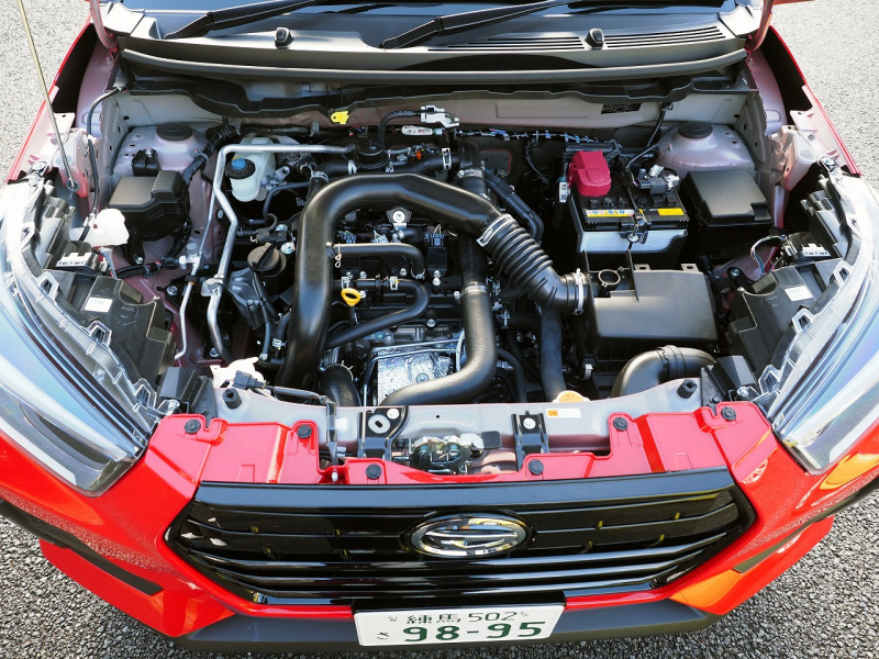 ロッキーに搭載されている直列3気筒1.0Lガソリンターボ(98ps/14.3kg・m)は、低回転からクルマを前へ押し出す力が強く、またエンジン回転上昇のフィーリングには心地よさを感じます。エンジンサウンドも中速以降で知方強く、積極的にエンジンを回して走ることが面白く感じます。加速の良さは、クルマ本体の軽さが影響していると考えられます。