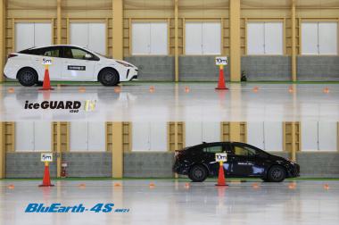 用意されたタイヤはスタッドレスタイヤが「アイスガードiG6」、オールシーズンタイヤが「ブルーアース4S AW21」です。テスト車両はトヨタ・プリウス。タイヤサイズは195/65R15 91となります。スピードレンジは、スタッドレスタイヤがQ、オールシーズンタイヤがHでオールシーズンタイヤのほうが高速性能が高いものとなっています。