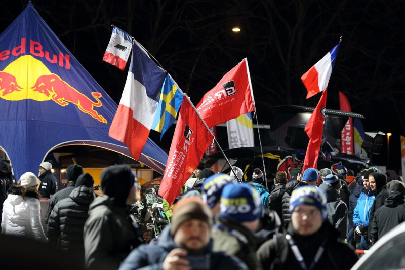 さて、雪も確認したところで一気に南下し、再びスウェーデンの都市カールスタッドへ向かいます。夜はここの競馬場を使い、本日2度目のシェイクダウンが行われます。こちらはテスト走行というよりどちらかというとファンサービス的なイベントです。走行前にズラッと並べられたラリーカーの風景は圧巻。