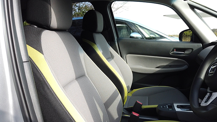 さらにインテリアは基本カラーをブラックに設定していますが、これにグレーまたはライムグリーンのアクセントカラーを加えたものとなっています。インパネのソフトパッド部分とシート部分には撥水性に優れたウォータープルーフ素材が採用され、よりスポーティな印象になりました。