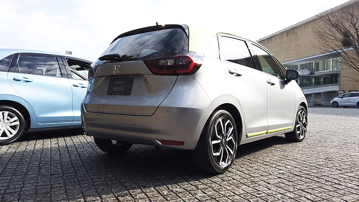 フィットのスポーツ(これはモータースポーツという意味合いではなく、人間が行う健康のためのスポーツなどを意図しています)モデルであるネスには、モノトーンのボディカラーに加え、ライムグリーンを合わせた専用のツートンカラーも設定されています。