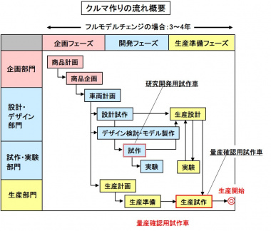 クルマは市場に投入する前に、さまざまな機能や性能、耐久信頼性の確認のため試作車を製作して試験します。開発初期の試作車の目的は機能や性能、中盤は信頼性や耐久性、後半はクルマ全体の品質の確認に重点が置かれます。