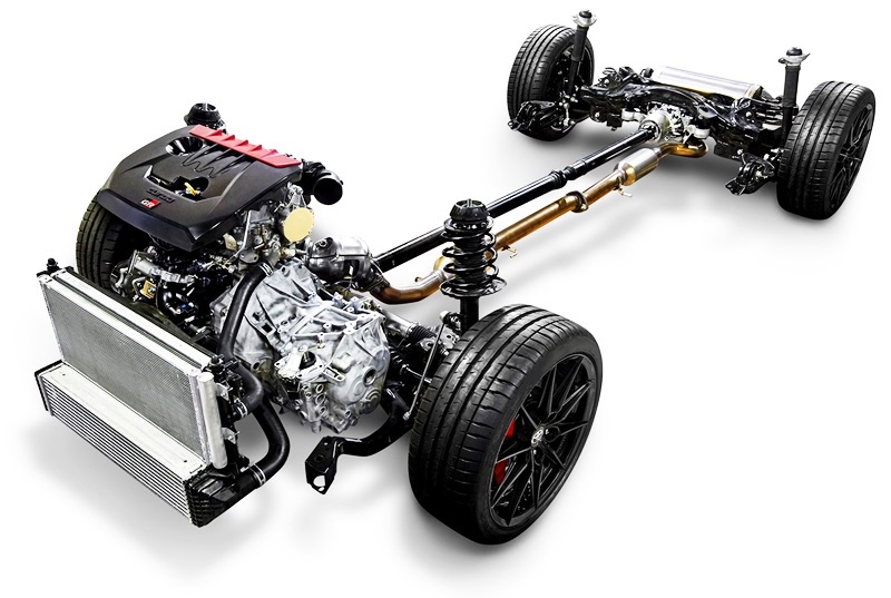 「GRカローラ」に搭載されるパワーユニットは「GRヤリス」と同様の1.6L直列3気筒直噴ターボエンジンのようで、TNGAエンジンの高速燃焼コンセプトに加え、吸排気系の最適化により、3気筒エンジンとして世界最高レベルの出力(272ps/37.7kgm)を発生。