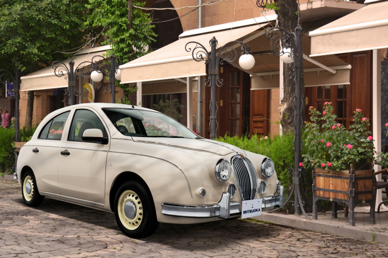光岡ブランドの最量販ロングセラーモデルとなるビュートは、日産マーチをベースにクラシカルな内外装を施した4ドアセダンモデルで、1993年に初代が登場し、2012年に3代目(現行モデル)に進化しました。ビュートなでしこは2015年に追加された5ドアハッチバックモデルとなります。