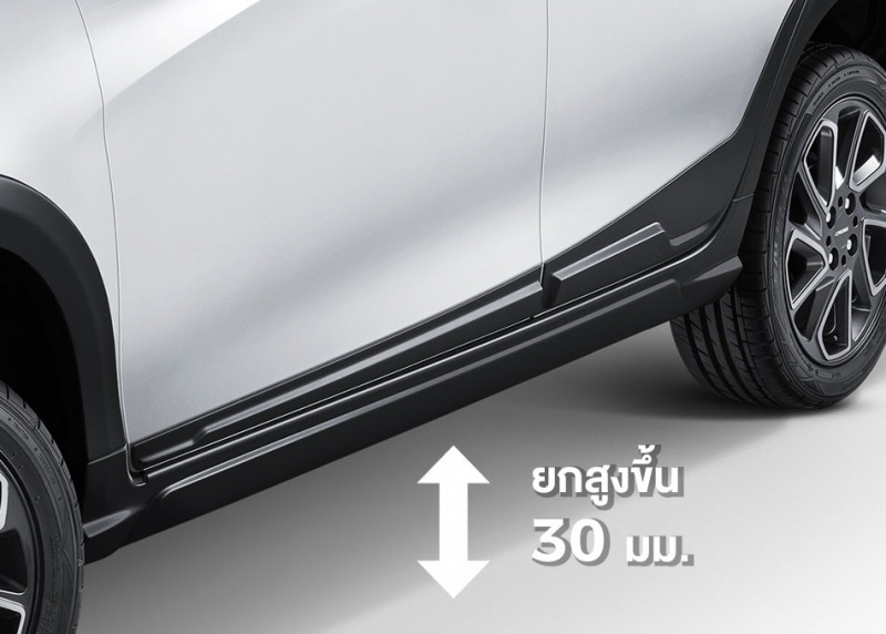 マットブラック仕上げのルーフ、車両周囲のスカート、16インチタイヤ&ホイール、ホイールアーチ、30mm車高アップのスプリング&ダンパーなどで構成されるキットは3万5000バーツ(約11万6000円)で購入可能です(取り付け費は別途必要)。キットは内容が充実する割にかなり安いですね。